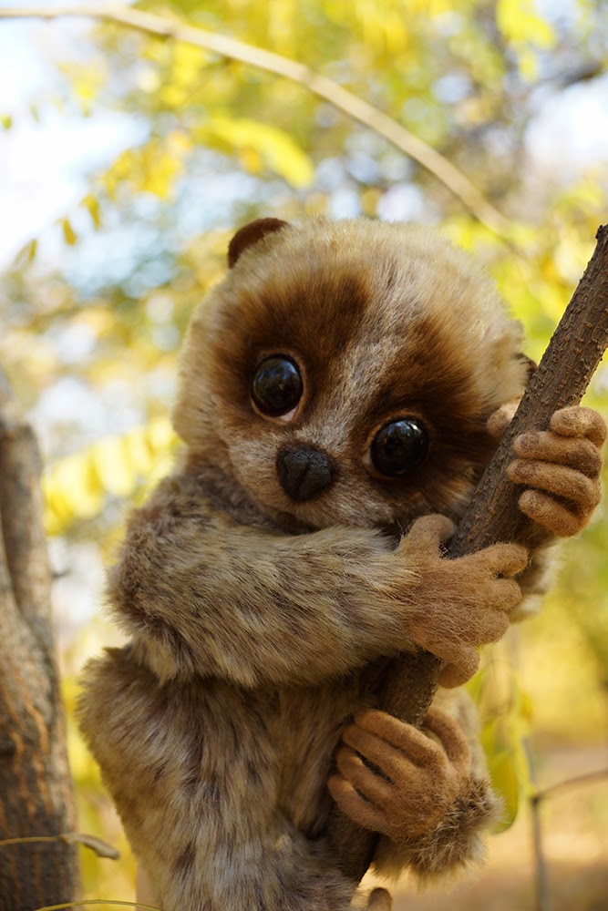 А сейчас покажу лемура. Давно вынашивала мысль как его сделать, каким.... и вот он родился. Сидя он 20см, а в полный рост 29см. Так что он крупненький. Лапки и пальчики армированы и гнутся, на шплинтах.